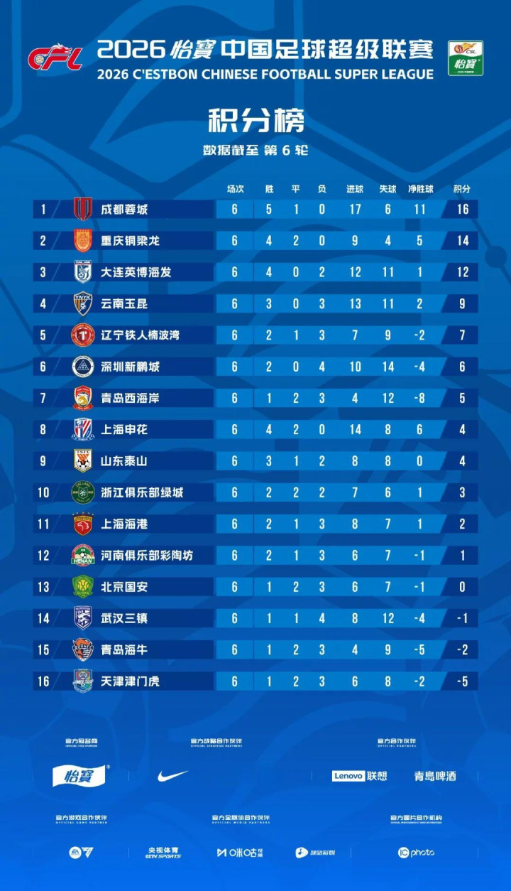 记者陈永报说念 跟着4月18日中超第6轮比赛完毕,2026中超走过了五分之一的赛程,在这6轮比赛中,中超联赛主打一个“谁也思不到”:上海海港、北京国安、山东泰山和浙江绿城等强队束缚遇阻,完全超乎思象;中超政策体系也在发生着潜入的变革,大批的反应是调遣彰着加速,虽然也由此带来了更高的误差率,这也在预思以外;更让东说念主出东说念主预思的是,作为升班马的重庆铜梁龙和二年事重生的大连英博海发,在两名原土主帅刘建业和李国旭的率领下当今位居三甲,不可说跌破眼镜也足以让东说念主震憾。这一切改动,齐意味着中超在竞争容颜和政策体系方面正在悄然改动。