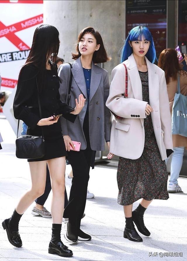 一、韩国女生都不穿阔腿裤、高跟鞋了,满街都是基础款