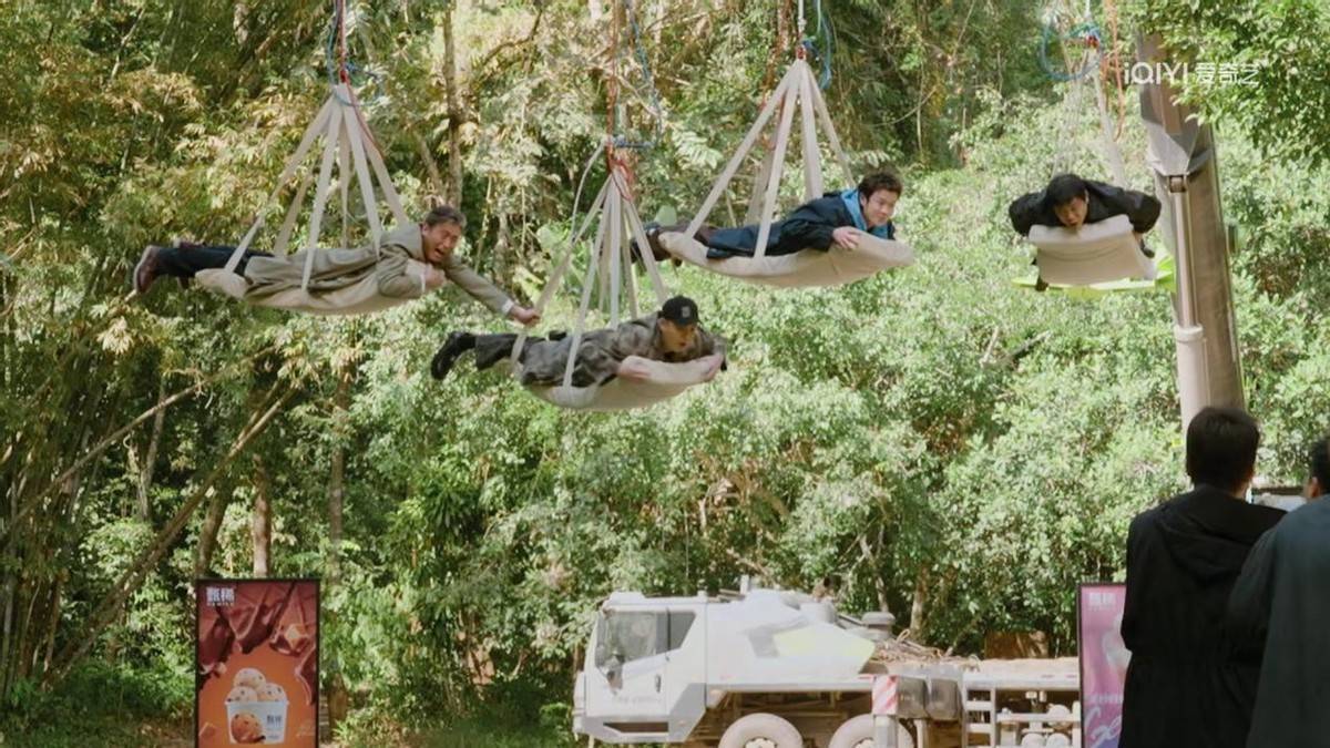 比如一启动,李乃文、马頔等四位嘉宾被吊在半空中,需要超鹿赫回报问题才调救他们。