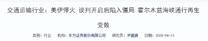 交通运输行业:好意思伊息兵 谈判开启后堕入僵局 霍尔木兹海峡通行再生变数