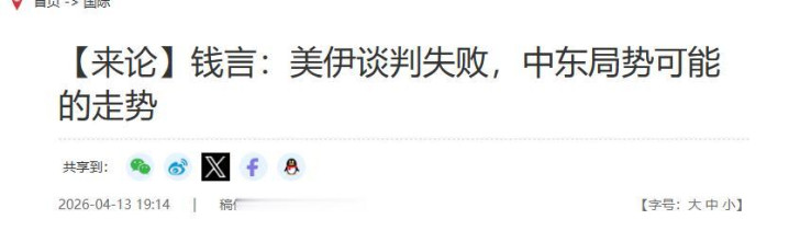 香港新闻网2026-04-13【来论】钱言:好意思伊谈判失败,中东地点可能的走势