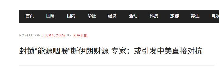 和平日报13/04/2026顽固“动力咽喉”断伊朗财路 大众:或激勉中好意思径直叛逆