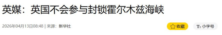 新华社2026年04月13日英媒:英国不会参与顽固霍尔木兹海峡