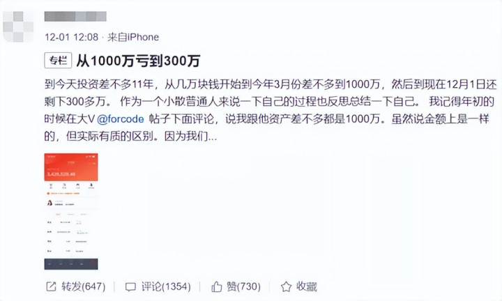 有一位广东网友共享,他炒股11年,从几万本金初始,挣到了1000万,但不到一年期间,就亏到了300万。