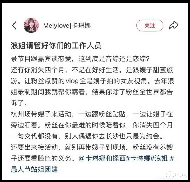 于是线上线下粉丝皆发力,酬酢平台全是“浪姐管好责任主谈主员”的诉求,条目节目组坐窝严查,严肃处理关系东谈主员,别让综艺酿成恋爱秀,更别亏负姐姐们的努力和不雅众的期待。