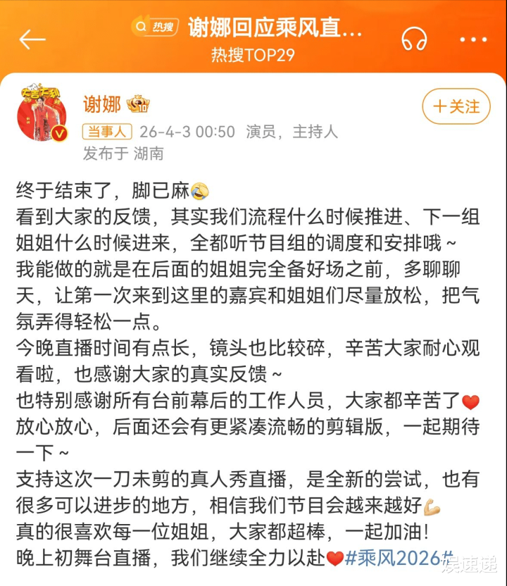 事情是这样个事情,情况亦然这样个情况,但谢娜这波利落切割,在部分网友看来照旧有些过于争议了。